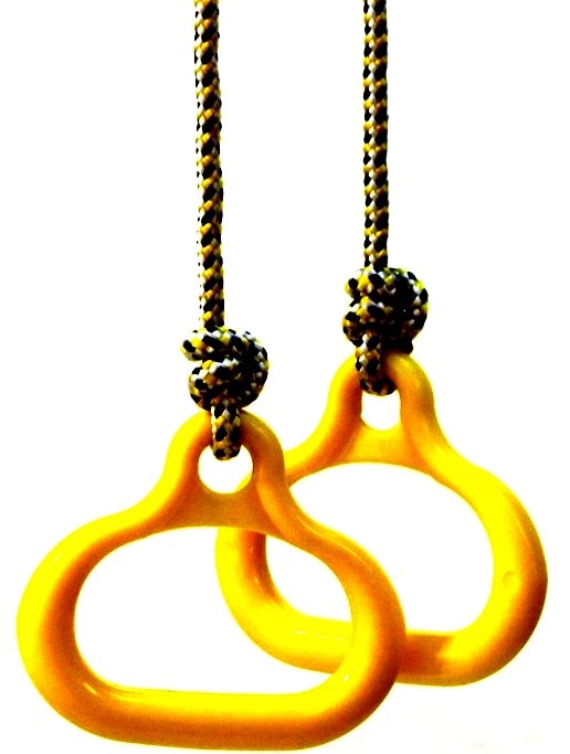 I bambini adorano allenarsi su un tale proiettile. Non solo migliora l'umore, ma aumenta anche la resistenza, rafforza i muscoli e l'apparato vestibolare, gonfia la stampa, le braccia e la schiena. Ci sono tacche e protuberanze sugli anelli di plastica, che consentono ai più piccoli di aggrapparsi saldamente a loro. Sono appesi a un cavo da 10 mm. Il prodotto è pienamente conforme agli standard statali stabiliti. Il carico massimo consentito è di 50 kg. Consigliato per bambini di età superiore ai tre anni.