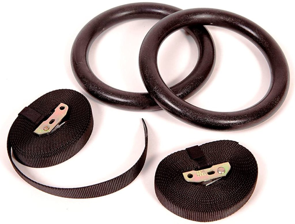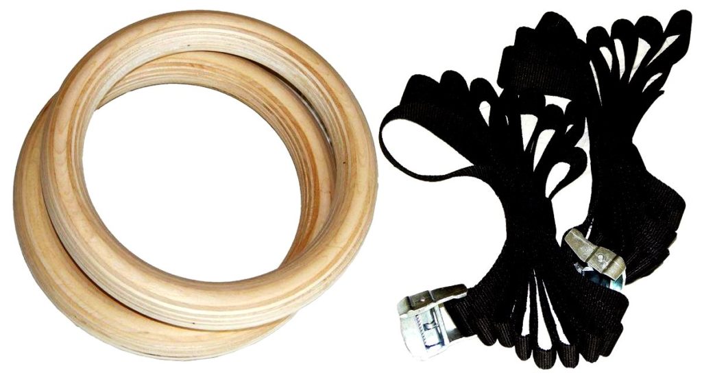 Anelli di legno con un diametro interno di 240 mm, fissati a fettucce d'acciaio di cinque metri. Il prodotto è meritatamente popolare sia tra i ginnasti professionisti che tra i dilettanti. Bene pompa i muscoli della schiena, braccia, petto. Soddisfa tutti i criteri di selezione. Dove puoi comprarlo? In un punto specializzato per la vendita di attrezzature sportive o ordina online in un negozio online, dopo aver precedentemente studiato la recensione di prodotti adatti e letto le opinioni dei clienti.