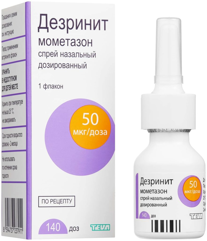 Questo spray nasale con un comodo spray e una confezione opaca ha un effetto topico ed è spesso prescritto per le allergie. Il principale principio attivo della desrinite è il mometasone, grazie al quale il farmaco ha effetti sia antinfiammatori che antiallergici. Aiuta con: