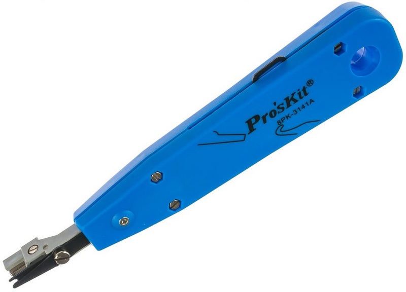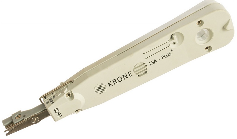Un buon strumento con una specializzazione ristretta ed è appositamente progettato per l'incrocio di cavi a doppino intrecciato. Il design è realizzato in resistente plastica ABS e la lama di taglio è realizzata in acciaio per molle da 65 Mn. Il tipo di testa utilizzato è "Krone" con una durezza sulla scala Rockwell di 50 chilogrammi-forza. Perfetto per lavori di cablaggio di rete intensivi. Il paese di produzione è Taiwan, il costo stabilito per le catene di negozi è di 690 rubli.