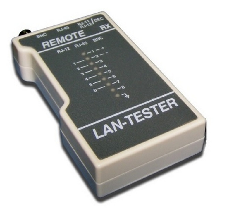 Può anche essere indicato come "tester di rete" o "tester doppino": questo dispositivo è progettato per diagnosticare il filo al fine di verificare lo stato della linea del cavo. Può rilevare rotture del cavo centrale, rilevare danni alla schermatura o all'isolamento, incroci di conduttori, fenomeni di cortocircuito. I modelli più professionali sono in grado di impostare la larghezza di banda della sezione del cavo misurando il livello e il tasso di attenuazione del segnale. Con questo strumento è possibile evitare molti errori e difficoltà che possono sorgere nel processo di crimpatura, posa e diagnosi delle reti via cavo.