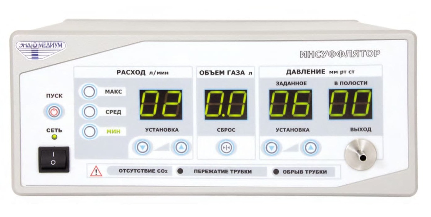 Questo dispositivo è un dispositivo di pressione intracavitaria elettronico e completamente automatico. Le modalità e i valori programmati consentono di confrontare e rilevare rapidamente le deviazioni dei parametri durante l'operazione e di avvisare tempestivamente il chirurgo della loro presenza. Quando si eseguono manipolazioni endoscopiche, l'insuffatore "Endomedium" controlla 8 misurazioni di input contemporaneamente, che vengono osservate durante l'intero processo. Alla minima deviazione dai parametri richiesti, il dispositivo in modo indipendente, oltre a emettere un segnale acustico, regola la modalità o la velocità desiderata.