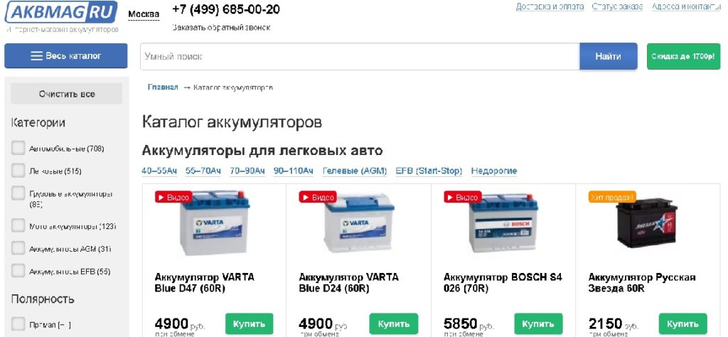 | https://akbmag.ru | 8-499-116- 69- 40 | 24 | Delta, Ecostart, AlphaLINE | |