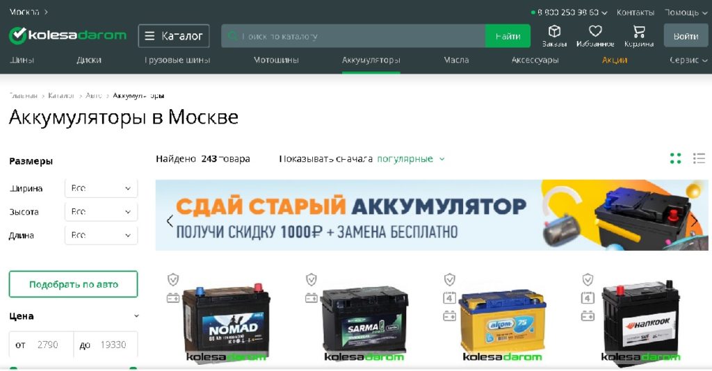 Sito web: https://www.kolesa-darom.ru/catalog/avto/akkumulyatory/