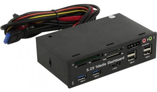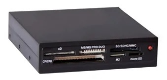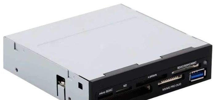L'unità universale è integrata in uno slot libero da 3,5 pollici nell'unità di sistema. Collegamento a un PC tramite una porta USB 3.0, che consente di ottenere velocità di trasferimento fino a 170 Mb/s, anche lavorando con più schede di memoria. Legge tutti i formati più utilizzati. Il pannello dispone di 6 ingressi per Micro SDXC, Memory Stick e Memory Stick Duo, X-picture, SDXC/SDHC/MMC, Compact Flash. Gli utenti notano la facilità di connessione e l'ulteriore lavoro. 1 anno di garanzia del produttore cinese.