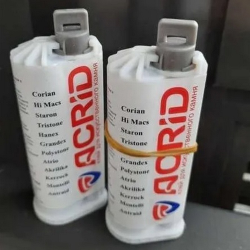 Questa moderna soluzione di fabbricazione russa è particolarmente consigliata per l'incollaggio di pietre artificiali acriliche e di quarzo. Differisce nell'eccellente qualità dell'incollaggio per tutti i tipi di pietra artificiale e superfici in quarzo. Il set completo fa una tuba + 2 miscelatori. Il costo consigliato per le catene di vendita al dettaglio è di 1130 rubli.