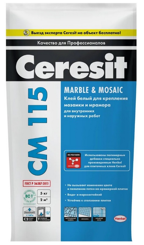 Se è prevista la decorazione d'interni in granito (marmo), l'adesivo può essere selezionato senza requisiti speciali per la resistenza al gelo: