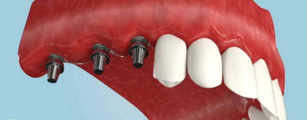 In assenza di volume osseo che non può essere aumentato e devono essere sostituiti diversi denti, vengono inseriti gli impianti basali. Sono fissati negli strati profondi dell'osso sul lato, dopo di che vengono immediatamente applicati dei ponti. L'affidabilità di un tale progetto non è al cento per cento.