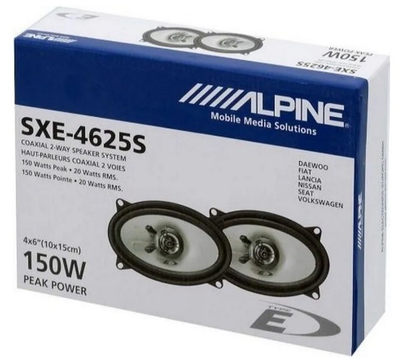 Questo sistema di altoparlanti coassiali ha una potenza nominale di 20 W e un massimo di 150 W. La gamma di frequenza riproducibile va da 90 Hz a 20.000 Hz. Un potente sistema di altoparlanti consente di ascoltare la musica senza distorsioni. La serie Alpine SXE-4625S sono altoparlanti che corrispondono alle dimensioni di installazione, alle caratteristiche di posizionamento degli altoparlanti in specifici modelli di auto. Il sistema consente l'integrazione anche nella macchina più piccola. Gli altoparlanti sono facili da montare nelle portiere e nel retro dell'auto, pur mantenendo un buon suono. Il prodotto è facile da installare, ha un'elevata efficienza. I filtri sono integrati in ogni altoparlante. Il costo consigliato per le catene di vendita al dettaglio è di 4500 rubli.