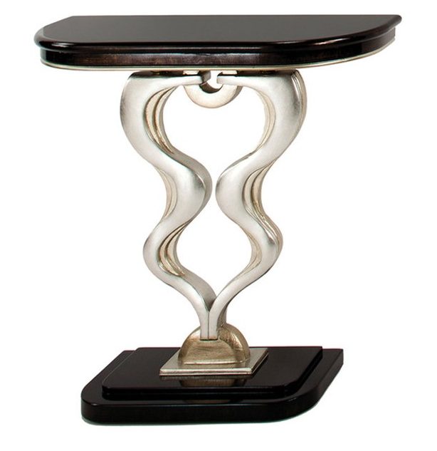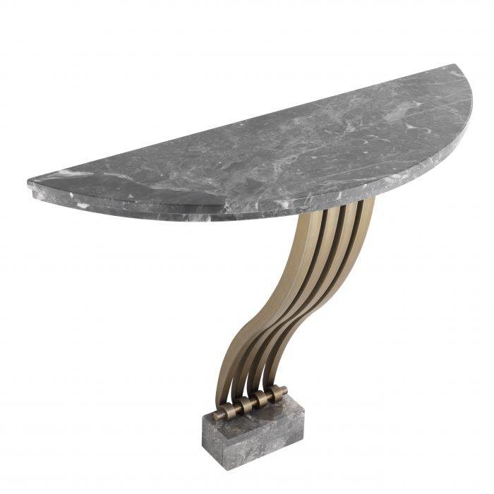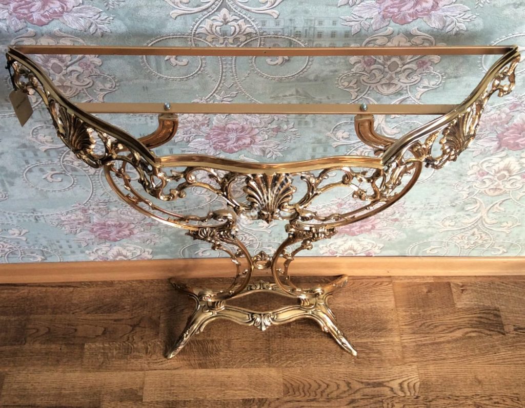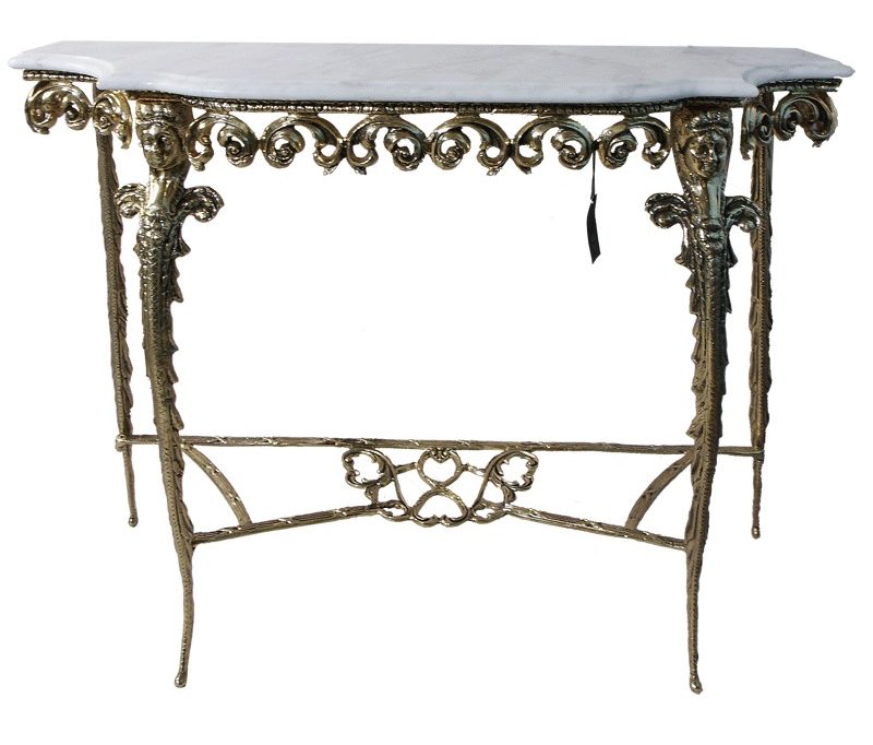 I modelli allegati sono spesso usati per piccoli spazi. Può essere posizionato sia nell'angolo che vicino al letto. La consolle di questo produttore è adatta a persone creative che, con tutte le responsabilità, si avvicinano alla scelta dei mobili per la casa. Il prodotto è realizzato in bronzo, il piano di lavoro è in marmo. Con la cura adeguata, sul piano di lavoro non si formano graffi e scheggiature.