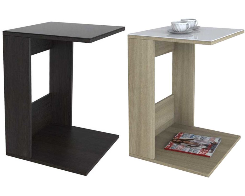 Il tavolino laterale ha una forma quadrata, quindi può essere montato in un angolo o lungo una parete. Il piano del tavolo è realizzato in truciolare, quindi durerà a lungo senza perdere il suo aspetto. Lo stile moderno consente di utilizzare il tavolo sia in corridoio che in camera da letto.
