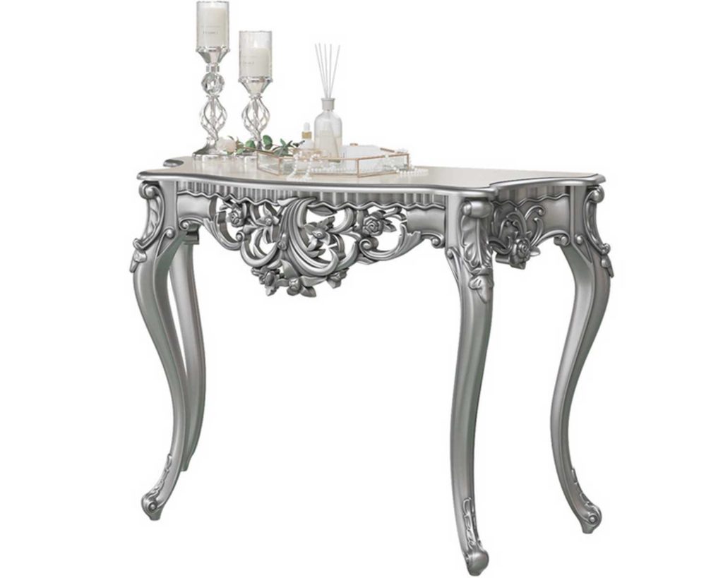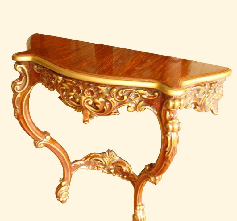 Un tavolo insolito decorerà ogni stanza. Il modello è realizzato in stile antico e dotato di gambe intagliate. La ghirlanda barocca attira l'attenzione e aggiunge un tocco di grazia.