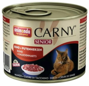 Cibo in scatola per animali anziani, confezionato in lattine, lamisters, sacchetti morbidi o vasi di plastica. Sono costituiti da pezzi grandi o piccoli di carne o pesce, verdure o cereali, ripieni di gelatina o salsa liquida.