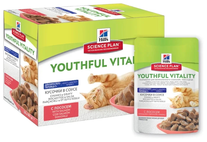 Un prodotto benefico specificamente progettato per invertire i segni dell'invecchiamento nei gatti più anziani. I granuli contengono ingredienti di qualità per la salute e la lunga vita del tuo animale domestico. La linea Youthful Vitality per attirare il tuo amico a quattro zampe ha un profumo gradevole e un ottimo gusto. La composizione non contiene aromi, conservanti nocivi e coloranti. La ricetta prevede solo ingredienti naturali di alta qualità.L'aggiunta di antiossidanti clinicamente testati rafforza il sistema immunitario dell'animale.