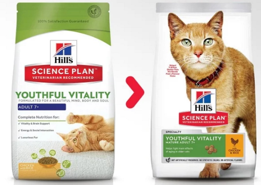 Il cibo per gatti anziani può essere acquistato in pacchetti:
