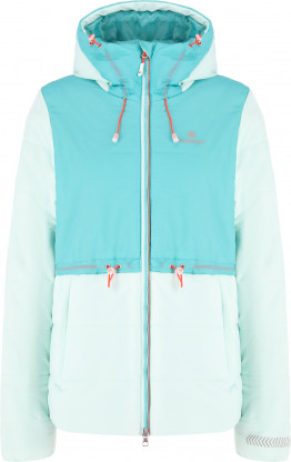 La giacca da donna isolata è realizzata in tessuto a membrana, caratterizzato da una buona permeabilità al vapore e ritenzione di calore. La presenza di impregnazione non consente la penetrazione dell'umidità e protegge dal vento.