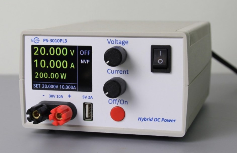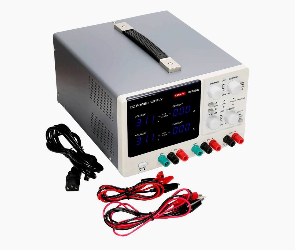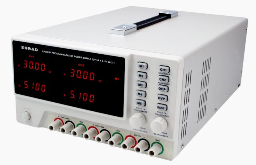 Il dispositivo a tre canali è quasi completamente in metallo, inclusi dissipatori di calore e trasformatori. Il peso è di 9,4 kg. Un canale è fisso, con un'uscita in tensione di 5 V ad una corrente di 3 A. I restanti due canali sono di tipo regolabile e operano nell'intervallo da 0 a 30 V e una corrente da 0 a 5 A. Quest'ultimo può lavorare sia indipendentemente che in parallelo o in serie, a seconda della modalità impostata.