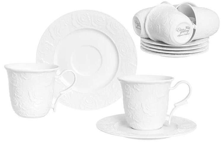 Il servizio è pensato per 6 persone: 12 articoli (6 tazzine, 6 piattini).