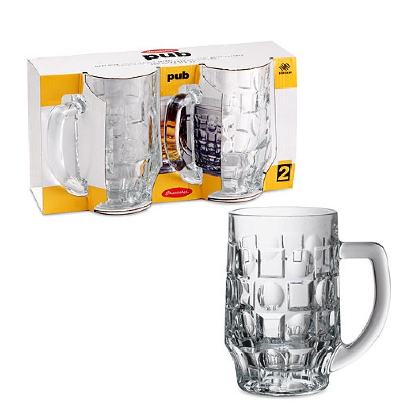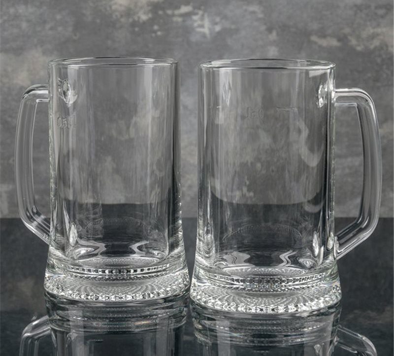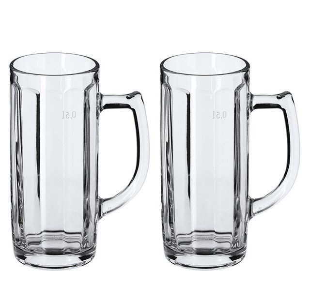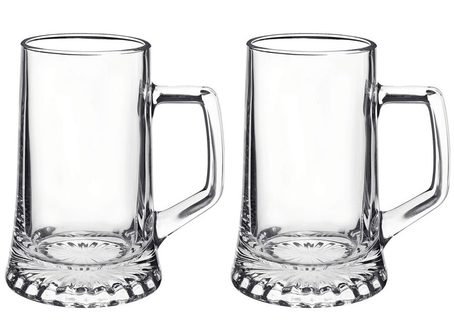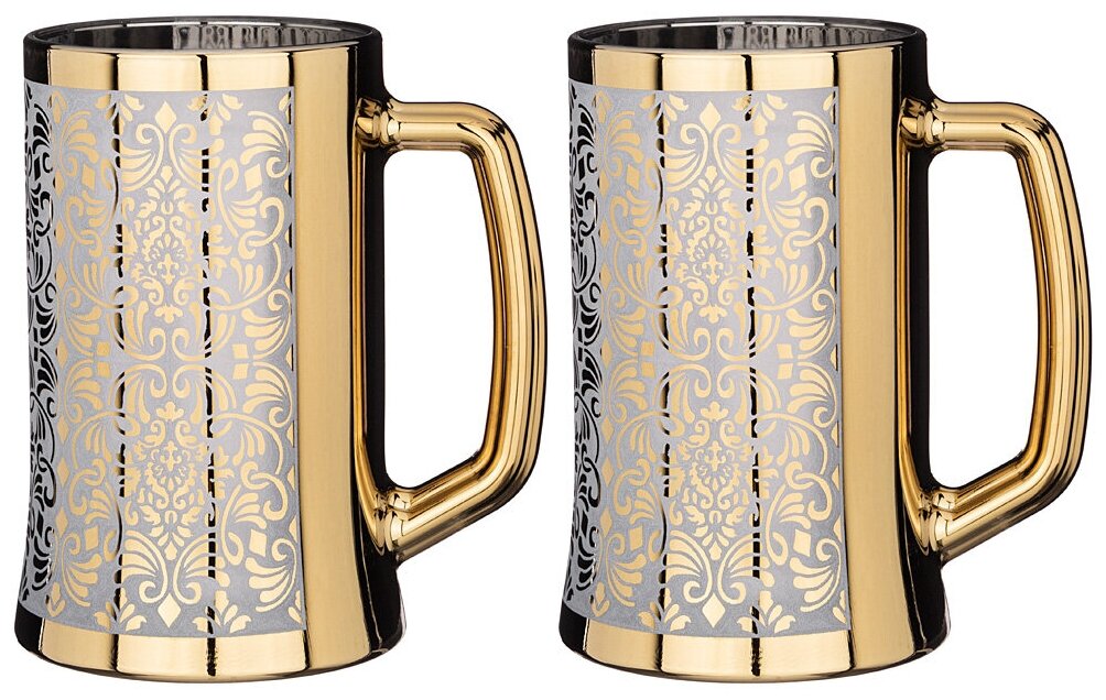 Il set è composto da due recipienti con una capacità di 0,5 litri ed è adatto agli amanti della birra. La tazza è decorata con un arredamento elegante che piacerà a quasi tutti gli utenti. La comoda maniglia ampliata si adagia comodamente in un palmo. Nonostante il contenitore abbia una grande capacità, il peso del modello non è troppo grande. Il colore scuro della tazza permette di mantenere il liquido fresco a lungo. Va inoltre notato che le impronte digitali non rimangono sul vetro.