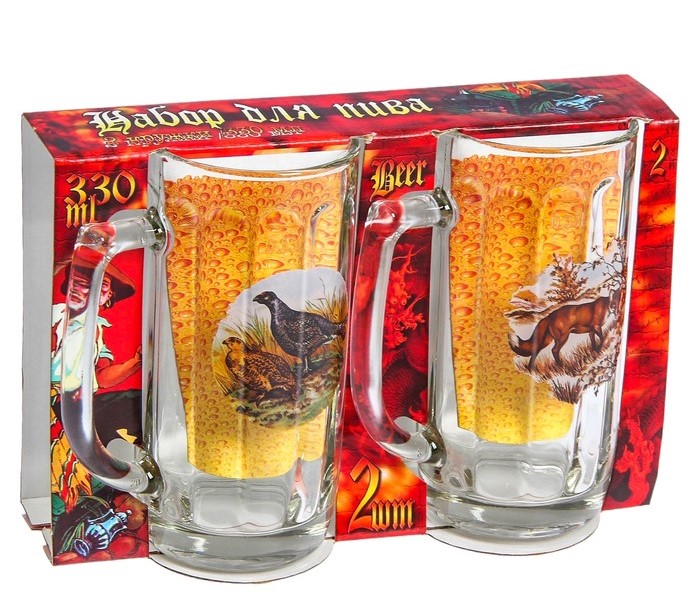 Il set perfetto per le riunioni di famiglia. Una tazza contiene 330 ml. La forma comoda e l'ampio manico rendono il consumo di birra non solo piacevole, ma anche confortevole. Il vetro è resistente, anche con un uso frequente non si graffia. Grazie alla confezione regalo, il prodotto è un'opzione ideale per un regalo. Una stampa brillante adorna il prodotto e anche con lavaggi frequenti non viene cancellata.Grazie alla decorazione, sul vetro non rimangono impronte digitali, quindi il prodotto non perde il suo aspetto per tutta la serata.