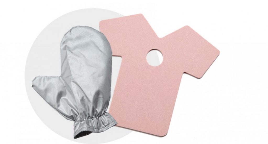 Il guanto sembra una piccola tasca con una superficie piatta e densa. L'utente, mettendo la mano nel guanto, non sente il calore del dispositivo di stiro e può fissare i dettagli della biancheria nel modo più comodo possibile per la stiratura.