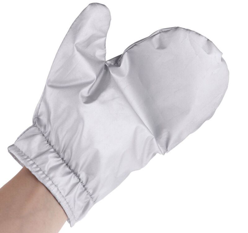 Il tessuto isolante professionale antistiro con rivestimento termoisolante in alluminio ceramico, anche con un uso frequente, non perde le sue prestazioni. Lo spessore è di soli 2 cm, quindi è comodo da usare. Va notato che la parte di lavoro dei guanti è liscia, quindi puoi stirare perfettamente qualsiasi tessuto.