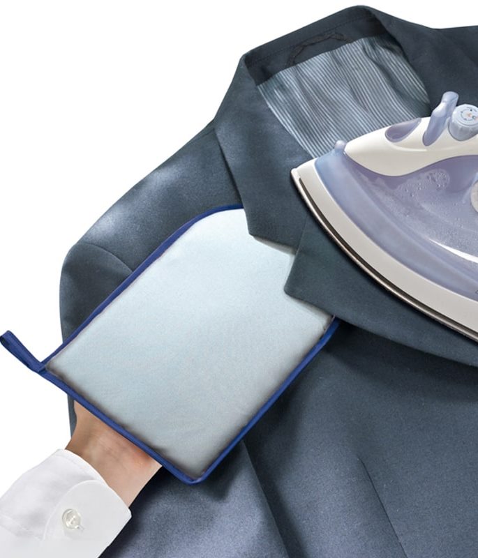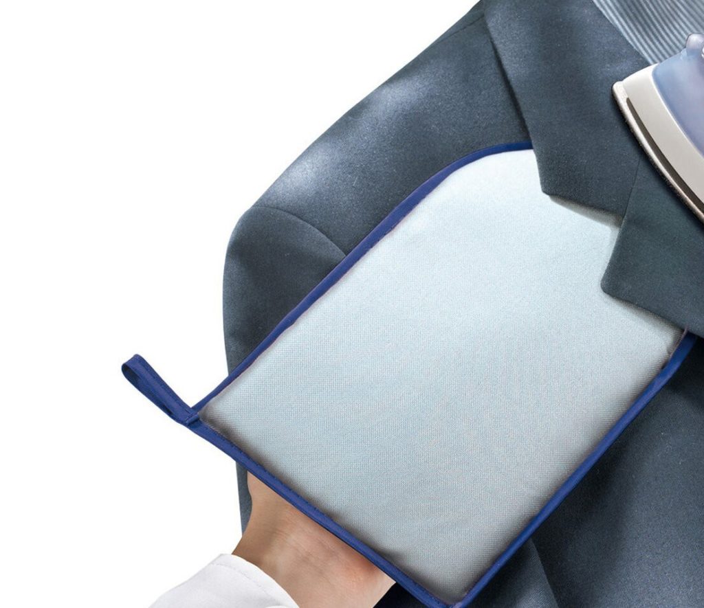 Inoltre, se necessario, il guanto può essere utilizzato come piccolo cuscino per stirare piccoli oggetti.Basta posizionare il cuscino sotto il tessuto e stirare accuratamente.