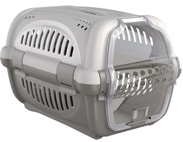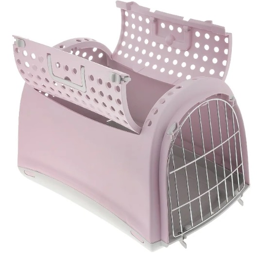 Anche questa opzione per il trasporto di animali è di un produttore italiano. Una caratteristica di questo modello è la possibilità di aprire il piano, ma è presente anche un'anta in metallo. Se l'animale non vuole entrare nel contenitore attraverso la porta, puoi semplicemente aprire la parte superiore e posizionarlo facilmente. La porta di metallo è realizzata a forma di reticolo ed è chiusa con clip. La custodia e una custodia per il trasporto sono realizzate in plastica di qualità. Le pareti laterali non hanno fori, ma sul tetto sono presenti fori rotondi che, insieme alla porta, forniscono un flusso d'aria sufficiente. Puoi anche rimuovere la griglia metallica e trasformare il trasportino in una cuccia.