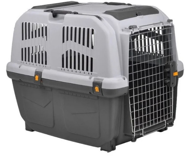 "MPS Skudo 6" è destinato al trasporto di cani di razza media e grande. Il supporto è realizzato in plastica di alta qualità ad alta resistenza. La porta è realizzata a forma di reticolo. Si chiude con chiavistelli girevoli. Va inoltre notato che il corpo e la porta sono fissati alla base con la potenza di affidabili elementi a scatto. C'è una maniglia retrattile per un facile trasporto e le ruote sono disponibili come optional. In assenza di ruote, le loro basi possono fungere da gambe, questo garantirà stabilità e preverrà danni alla base. La parte superiore dei pannelli laterali ha aperture sufficientemente grandi per fornire condizioni ottimali per la circolazione dell'aria.E nella parte inferiore ci sono due scomparti dove puoi mettere i documenti.