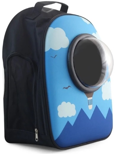 Nessun intenditore di cose eleganti e originali passerà da una tale borsa da trasporto. Lo zaino ha una stampa insolita a forma di palloncino sul davanti, oltre a una finestra a forma di oblò voluminoso, da cui il tuo piccolo amico può guardare cosa sta succedendo intorno.