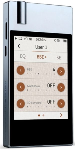 Il lettore Hi-Fi non ha memoria incorporata, tutte le registrazioni sono archiviate su una scheda di memoria fino a 128 MB. La carta si acquista separatamente. Il dispositivo legge 6 tipi di formati. C'è un'interfaccia wireless Bluetooth, un line-out per la connessione a un computer. Poco si nota sullo schermo, viene indicato solo il tipo: OLED. All'interno è integrata la propria batteria agli ioni di litio, la ricarica avviene tramite una presa USB di tipo C. La potenza del canale sonoro è di 125 mW, il rumore raggiunge i 95 dB. Il lettore viene riprodotto, il volume viene regolato da un equalizzatore digitale. Controllato da pulsanti.