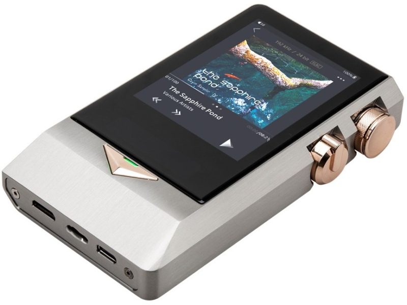 Il più costoso Flash player con funzioni Hi-Fi ha una solida struttura in acciaio, un touch screen LCD a colori da 3,2 pollici con una risoluzione di 360x480. Il gadget è progettato senza un solo angolo acuto, l'aspetto del colore platino, i pulsanti dorati tradiscono il lusso e lo stile vintage. Con tutta la solidità esterna, l'unità ha i soliti parametri tecnici. La memoria interna di 128 GB può essere espansa con una scheda con una capacità di 512 GB.Il kit contiene una custodia in pelle marchiata, adattatori coassiali da USB tipo C a un mini-jack con un diametro di 3,5 mm e RCA, adattatori da 4,4 mm a 2,5 mm, 2 XLR. L'installazione riproduce quasi tutti i formati, la frequenza di campionamento dei file corrisponde a 32/384. L'orologio è una caratteristica. Se le cuffie sono collegate a un'uscita sbilanciata, puoi scegliere tra un amplificatore a valvole e uno a stato solido. Una caratteristica del modello è l'orologio.