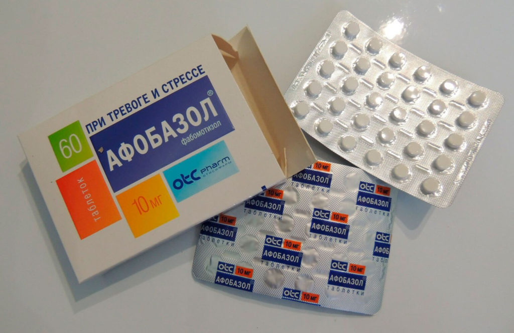 Uno dei farmaci più comunemente prescritti. L'efficacia del trattamento è dovuta all'effetto ansiolitico (elimina ansia, cattivi presentimenti, sospettosità, pianto) e al leggero effetto stimolante dell'Afobazolo. Elimina i sintomi dell'ansia somatica: respiratoria, cardiovascolare (normalizza il ritmo) e irritabilità.