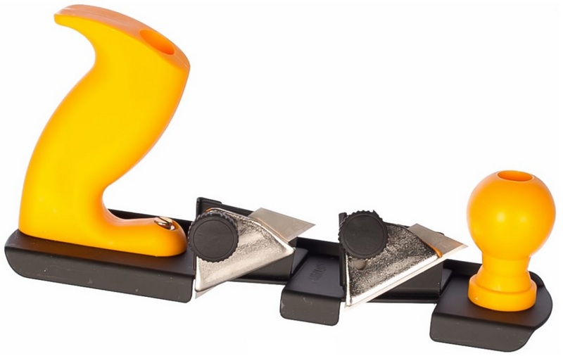 Questa pialla metallica può essere utilizzata non solo per la lavorazione di cartongesso e pannelli di plastica, ma anche per la lavorazione della fibra di vetro. Il campione ha una maniglia regolabile che può essere fissata a diverse angolazioni. È dotato di supporti speciali che consentono di cambiare le lame per lavorare con diversi materiali. Direttamente nel design del corpo sono presenti fori speciali progettati per l'asportazione del truciolo. La suola ha il massimo allungamento. Il paese di origine è la Germania, il costo stabilito per le catene di vendita al dettaglio è di 810 rubli.