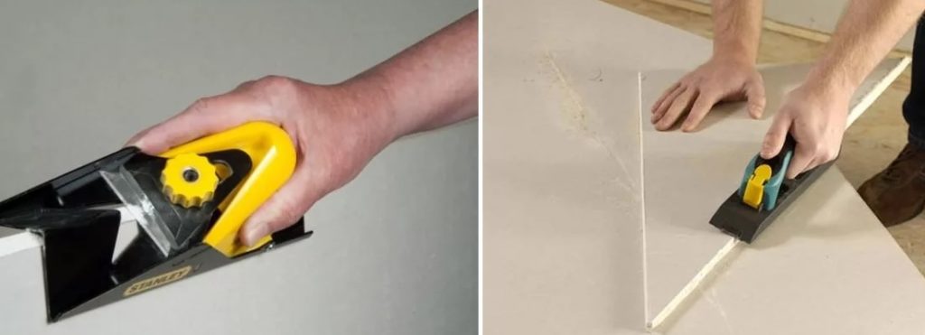 Inoltre, questo strumento sarà necessario nella fase finale del lavoro, in modo che al termine della posa e durante la finitura delle superfici, le cuciture possano essere stuccate senza problemi. Per fare ciò, uno smusso viene rimosso lungo i bordi del foglio con una pialla, che forma una rientranza, che viene successivamente riempita di mastice, che in futuro eliminerà il rischio di rigonfiamenti e crepe nelle cuciture.