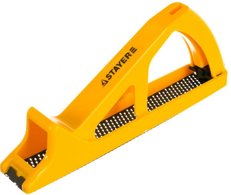 Un'opzione buona ed economica per un dispositivo di peeling. È destinato alla lavorazione non solo di fogli di cartongesso, ma anche di legni teneri, compresi i prodotti a base di gesso puro. Il manico è una costruzione in un unico pezzo. E la suola è realizzata in acciaio standard. La lunghezza totale della pialla è di 140 millimetri. Il paese di origine è la Germania, il costo consigliato per le catene di vendita al dettaglio è di 420 rubli.