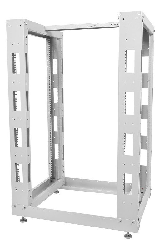 I telai hanno una base comune con gambe per il montaggio a pavimento e una barra nella parte superiore per la rigidità. Il supporto dell'attrezzatura viene inserito nei profili forati. Il servizio è disponibile da tutte le direzioni.