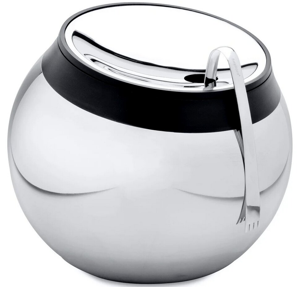 Il secchio sferico è costituito da due contenitori: esterno, interno. Cassa esterna: acciaio inossidabile acciaio 18\10, lavorazione a specchio. La custodia interna è in plastica ABS nera.Il foro è decorato con un inserto in plastica nera.