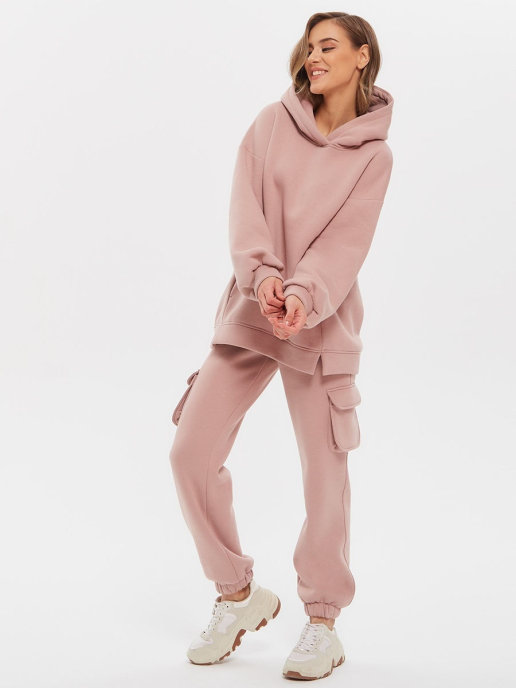 Il set del produttore russo è composto da una felpa con cappuccio con cappuccio e pantaloni dal taglio dritto. Tessuto - piè di pagina, il 65% è composto da viscosa. La felpa e i pantaloni hanno tasche all'americana. La felpa è incorniciata da elastico nella parte inferiore, non ci sono polsini sulle maniche e sulle gambe.