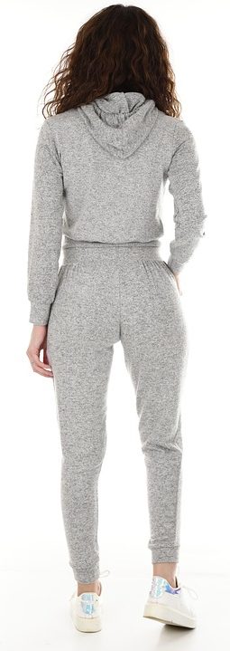 Un set in cotone (75%) attrae per la sua semplicità in termini di design e qualità impeccabile. Il morbido materiale con cui è cucita la felpa con cappuccio ha un motivo strutturato a forma di scritta con il nome del marchio su tutta la superficie. Le maniche sono abbassate, il che non consente nemmeno il minimo vincolo di movimento.