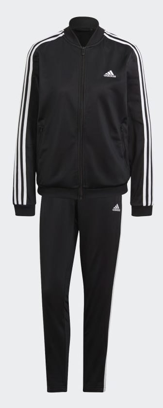 Una classica tuta ispirata all'Adidas. L'Olympia con cerniera con colletto rialzato e fascia elastica in basso ha due tasche esterne all'americana, ognuna delle quali si chiude con una cerniera. I pantaloni si distinguono per un taglio stretto al fondo; oltre all'elastico, è presente una coulisse sulla cintura. Combinazione di colori: bianco e nero. Il decoro è riconoscibile da tre strisce sui lati dei pantaloni e sulle maniche, oltre a un logo sul davanti della felpa e dei pantaloni.