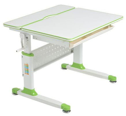 Il piano del tavolo può essere inclinato fino a 55 gradi e la manopola di regolazione dell'altezza può essere impostata a destra o a sinistra. C'è un ascensore a gas per cambi di altezza fluidi. Ci sono comodi cassetti. Adatto per adulti e bambini alti 100-180 cm Struttura in metallo. Prezzo: 14990 rubli.