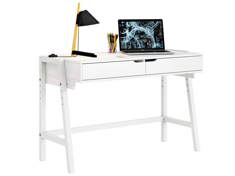 Il modello ha 2 gambe in metallo stabili, un piano in truciolare e una comoda maniglia per cambiare l'altezza delle gambe. Una superficie liscia, senza curve e ripiani, consente di posizionare sul tavolo tutti gli oggetti necessari per il lavoro, incluso un laptop o un computer. Costo: 45388 rubli.