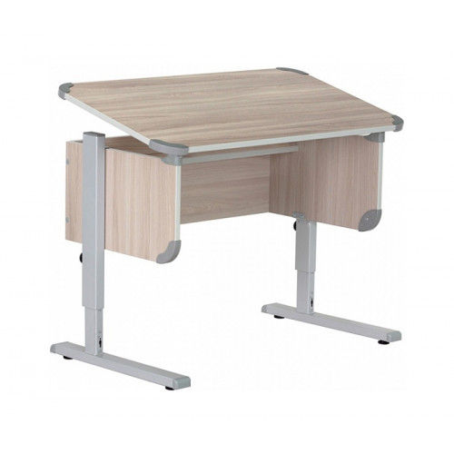 Questo modello ha la capacità di cambiare l'angolo del piano del tavolo fino a 30 gradi (ci sono 9 gradini lisci). La superficie stessa è realizzata in truciolare laminato di alta qualità, il telaio è in metallo, questo garantisce una lunga durata del prodotto. Adatto per altezza: 120-198 cm All'interno è presente un comodo ripiano per le cose. Prezzo medio: 6904 rubli.