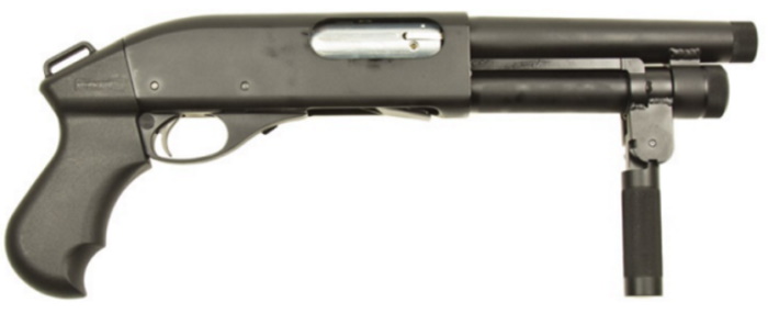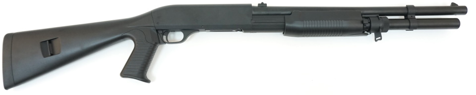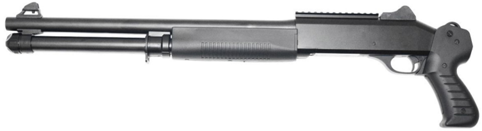 Una replica compatta del fucile a canna liscia Remington 870 "Wingmaster" più venduto per l'uso nel combattimento softair in spazi ristretti al chiuso o in fitti boschi fitti. Il corpo è in lega di alluminio, il manico è in plastica. L'impugnatura pieghevole aiuta a tenere il fucile durante lo sparo e sostituisce il paramano per la ricarica. Non ci sono dispositivi di avvistamento. La parte girevole dell'imbracatura si trova sopra l'impugnatura.La bombola del gas per la CO2 si trova nel cancello.