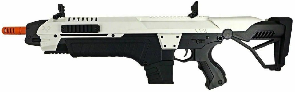 Innovativo modello elettropneumatico per riprese semiautomatiche o automatiche da parte di giocatori finanziariamente capaci. La presenza di tre tronchi garantisce la partenza simultanea di tre palline. Ogni canna interna ha un controllo Hop Up separato che controlla l'espansione delle palline. La custodia è realizzata in plastica polimerica di alta qualità, con una struttura in metallo all'interno. I dispositivi per la mira sono realizzati sotto forma di diottrie e mirino, che sono installati nella parte superiore del corpo. L'esempio non è regolamentato. Le girelle per la cintura si trovano alla base del mirino e sul calcio, possono essere fissate sia sotto la mano sinistra che sotto la mano destra. Il caricatore si azzera tramite il pulsante sul lato destro del ricevitore inferiore, la sostituzione può essere effettuata con entrambe le mani. Nel calcio è alloggiata una mini-batteria da 8,4 V (NiMh) o 7,4 V (LiPo).