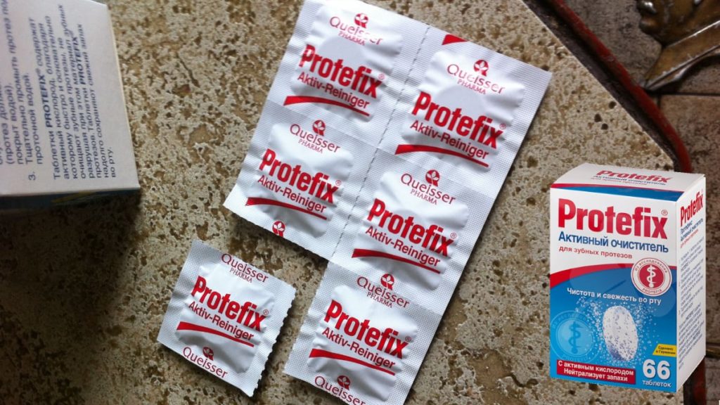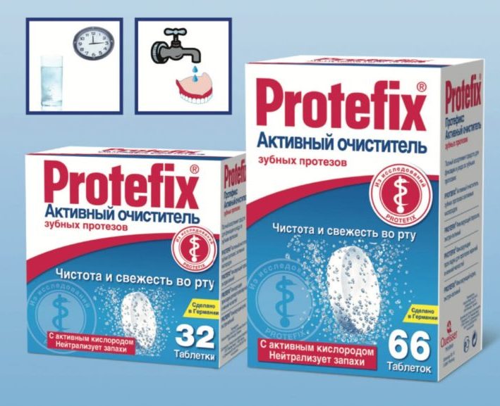 Le compresse di Protefix hanno dimostrato la loro efficacia in materia come la pulizia della protesi dai resti di cibo incastrati tra i denti, placca microbica e calcoli pericolosi per lo smalto. Se i denti artificiali si sono scuriti a causa della nicotina, del tè nero forte o del caffè, le meravigliose pillole aiuteranno a ripristinare il colore originale. Oltre all'odore fresco dalla bocca, che apparirà grazie alle compresse, la protesi sarà ricoperta da una pellicola protettiva e salvata dai danni che potrebbero verificarsi durante la pulizia.