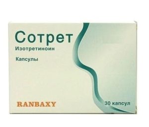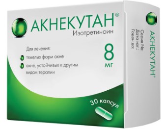 Un retinoide popolare con un alto contenuto di isotretinoina, rigenera con successo i tessuti, allevia l'infiammazione, porta a una diminuzione delle dimensioni dei dotti delle ghiandole sebacee, con conseguente diminuzione dell'intensità della secrezione di sebo. Ha un effetto dannoso su una serie di microrganismi patogeni. È prescritto per forme gravi di acne con cicatrici. Controindicato in caso di insufficienza epatica. L'uso concomitante con vitamina A e antibiotici dovrebbe essere evitato. Per una cura completa, il primo corso viene eseguito per 16 settimane, dopo una settimana di pausa ripetuta. All'inizio della terapia, un dermatologo può prescrivere pomate idratanti, lozioni, balsami per le labbra per evitare un'eccessiva secchezza della pelle e delle mucose.