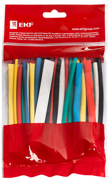 Il set più standard per uso domestico. Ci sono diverse opzioni di colore per tubi di vari diametri. Progettato più per la marcatura che per l'isolamento completo. Mantiene i requisiti minimi di resistenza e restringimento. Tuttavia, tutte le carenze sono compensate da un prezzo estremamente conveniente.
