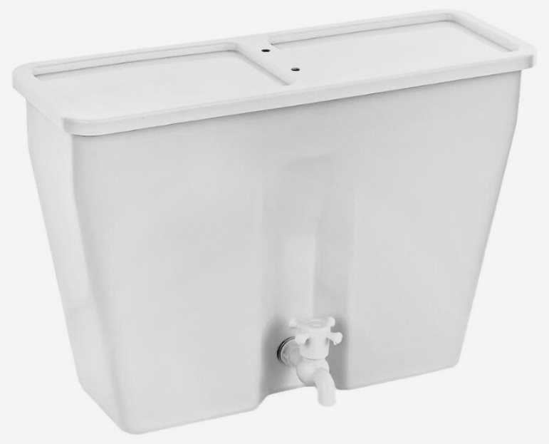 Se necessario, è possibile collegare un elemento riscaldante che riscalda l'acqua a una certa temperatura. Un tale modello non occupa molto spazio e non necessita di elementi di fissaggio aggiuntivi. Il volume del serbatoio è di 22 litri, quindi non devi preoccuparti di rimanere senza acqua presto.